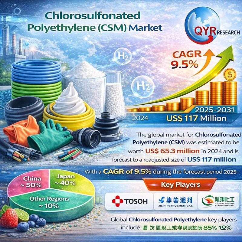 The global market for Chlorosulfonated Polyethylene (CSM) was estimated to be worth US$ 65.3 million in 2024 and is forecast to reach a readjusted size of US$ 117 million by 2031, expanding at a strong CAGR of 9.5% during the forecast period 2025-2031.