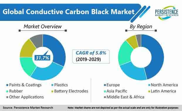 Various properties of conductive carbon black enable it to offer better color strength, excellent heat and light resistance, and good dispersibility to coatings, printing inks, plastics, and rubbers. Conductive carbon black also provides conductivity, toluene light transmittance, and fluidity to these items. Coatings such as epoxy and acrylic are incorporated with conductive carbon black for use in automotive industries. The conductive carbon black market recorded a volume of 78,300 tons in 2018, and is expected to exhibit a CAGR of 5.5% during the forecast period (2019-2029).To remain ‘ahead’ of your competitors, request for a samples@