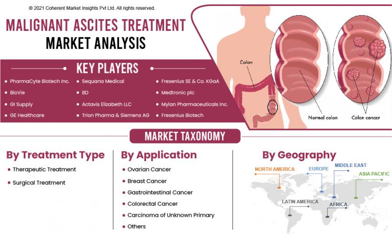 The key players operating in the global malignant ascites treatment market include PharmaCyte Biotech Inc., Sequana Medical, Fresenius SE & Co. KGaA, BioVie, BD, Medtronic Plc, and GI Supply, Actavis Elizabeth LLC, Mylan Pharmaceuticals Inc., GE Healthcare, Trion Pharma, Siemens AG, and Fresenius Biotech.
