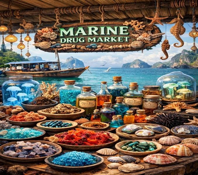 The Marine Drug Market refers to the industry focused on the discovery, development, production, and commercialization of pharmaceutical compounds derived from marine organisms such as algae, sponges, corals, bacteria, and other sea-based life forms.