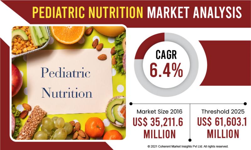 The global pediatric nutrition market is anticipated to grow at a CAGR of 6.4 percent from 2017 to 2025, due to an expanding product range to service a broader variety of clients and a higher widespread adoption in Asia Pacific's rising nations.
