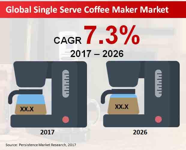 Persistence Market Research forecasts the U.S. single serve coffee maker market to exhibit a compound annual growth rate (CAGR) of 8.4% from 2017 to 2026.