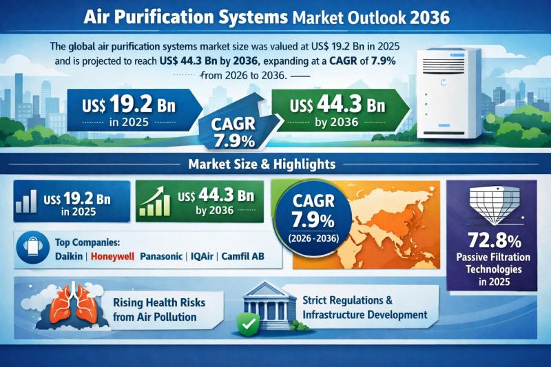 Global Air Purification Systems Market to Reach USD 44.3 Billion by 2036 at 7.9% …