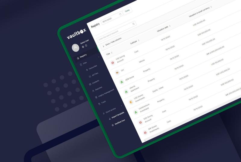 A Singapore registered and certified FinTech company has developed a platform called vaultbox. It is a single, secure, cloud-based location for financial and legacy planning. With bank-quality encryption hosted by AWS in Singapore, one can be sure that the information stored in their digital vault is not accessible by vaultbox administrators and their digital assets stay with them and their trusted deputies.