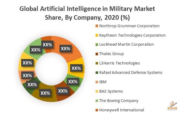 Some of the major Artificial Intelligence in Military Market players holding highest market share include Northrop Grumman Corporation, Raytheon Technologies Corporation, Lockheed Martin Corporation and Thales Group. These players use new product development as a key strategy to gain significant market share to compete with market leaders.