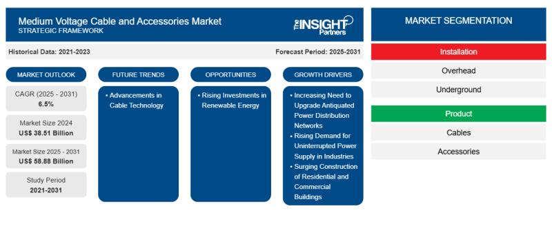 The medium voltage cable and accessories market size was valued at US$ 38.51 billion in 2024 and is expected to reach US$ 58.88 billion by 2031; it is estimated to register a CAGR of 6.5% during 2025-2031. Advancements in cable technology are likely to remain a key market trend in the future.
