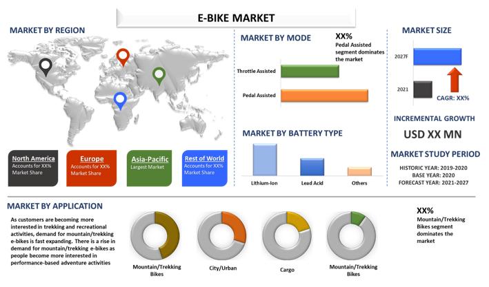 A comprehensive overview of the Global E-Bike Market is recently added by UnivDatos Market Insights to its humongous database. The report has been aggregated by collecting informative data from various dynamics such as market drivers, restraints, and opportunities. This innovative report makes use of several analyses to get a closer outlook on the E-Bike Market in the Global context. This report offers a detailed analysis of the latest industry developments and trending factors that are influencing market growth. Furthermore, this statistical market research repository examines and estimates the Global E-Bike Market at the regional & country levels. The Global E-Bike Market is expected to grow at a CAGR of 10% between 2021-2027Request Sample Copy of this Report @ https://univdatos.com/get-a-free-sample-form-php/?product_id=11905