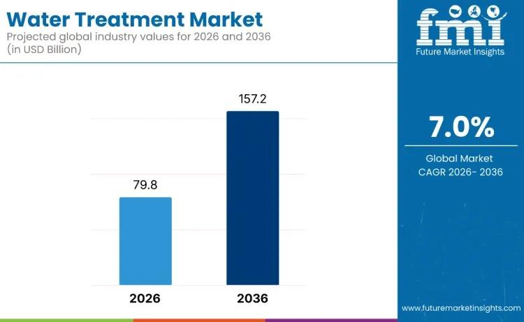 The global Water Treatment Market is entering a decisive growth phase, supported by urgent water security challenges and accelerating infrastructure investments. Valued at USD 79.8 billion in 2026, the market is forecast to nearly double, reaching USD 157.2 billion by 2036, expanding at a steady CAGR of 7.0%. This growth reflects mounting concerns around water scarcity, pollution, and regulatory compliance, alongside the growing need…