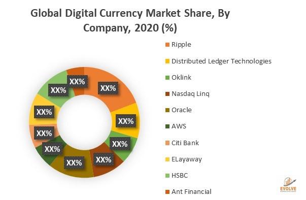 Some of the major Digital Currency players holding highest market share include Ripple, Distributed Ledger Technologies, Oklink and Nasdaq Linq. These players use partnership and collaboration as a key strategy to gain significant market share to compete with market leaders.