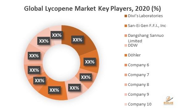 Some of the major Lycopene players holding highest market share include Allied Biotech Corporation, Lycored , DSM and Wellgreen Technology Co Ltd . These players use new product development as a key strategy to gain significant market share to compete with market leaders.