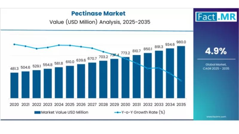The global pectinase market is set for steady expansion from 2025 to 2035 as food, beverage, and bio-industrial manufacturers increase adoption of enzymatic processing solutions.