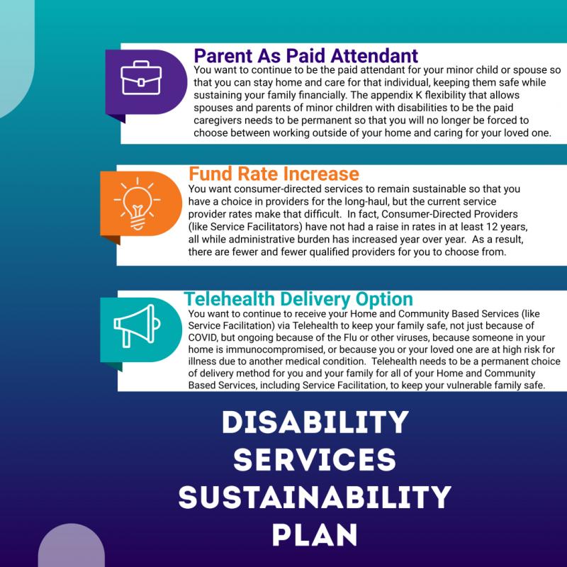 Tell them how your family has been able to safely use your services throughout the pandemic thanks to the Telehealth Delivery Method option. Tell them to keep your family safe, even after the pandemic. Ask them to make the telehealth delivery method a permanent option for ALL Home and Community Based Service Providers, including Consumer-Directed Providers, like Service Facilitation.