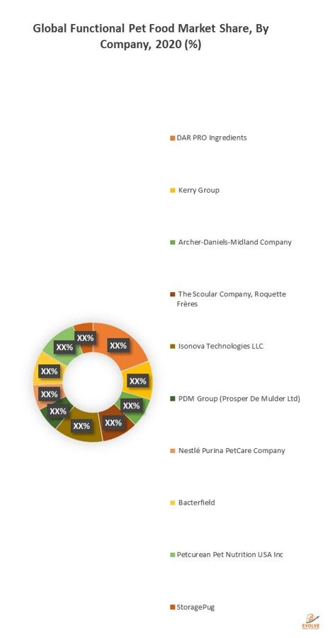 Some of the major Functional Pet Food players holding highest market share include DAR PRO Ingredients, Kerry Group, Archer-Daniels-Midland Company. These players use new product development as a key strategy to gain significant market share to compete with market leaders.