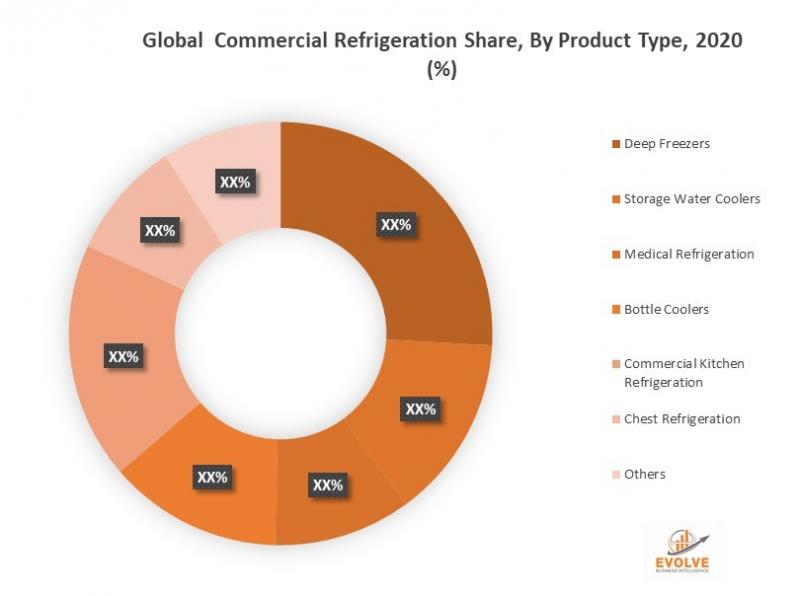 The global Commercial Refrigeration Market is segmented based on product type, and application. On the basis of product type, the market is segmented as Deep Freezers, Storage Water Coolers, Medical Refrigeration, Bottle Coolers, Commercial Kitchen Refrigeration, Chest Refrigeration, Others. And based on the application, the market is analyzed across the E-commerce, Supermarket/ Hypermarket E-commerce, Foods Service Restaurant& Hotels, Food Processing Industry, Hospitals, Retail Pharmacies, Convenience stores, Others.