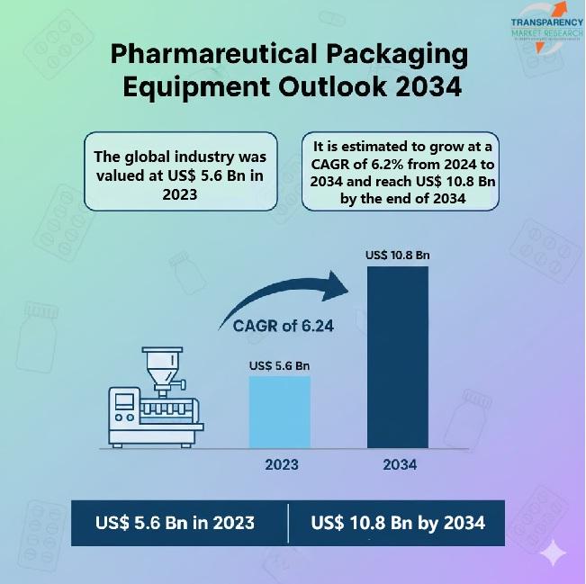 The pharmaceutical packaging equipment market, valued at US$ 5.6 Bn in 2023, is entering a high-growth phase driven by rising drug production, increasing regulatory complexity, and the industry-wide transition toward automation and digitalization. With a projected CAGR of 6.2% from 2024 to 2034, the market is expected to reach US$ 10.8 Bn by 2034, reflecting the expanding need for advanced packaging machinery that ensures safety, sterility, efficiency, and global compliance.…