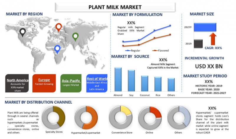 A comprehensive overview of the Plant Milk market is recently added by UnivDatos Market Insights to its humongous database. The Plant Milk report has been aggregated by collecting informative data of various dynamics such as market drivers, restraints, and opportunities. This innovative report makes use of several analyses to get a closer outlook on the Plant Milk market. The Plant Milk report offers a detailed analysis of the latest industry developments and trending factors in the market that are influencing the market growth. Furthermore, this statistical market research repository examines and estimates Plant Milk at the global and regional levels. The Plant Milk Market is expected to grow at a CAGR of around 10% from 2021-2027.Market Overview