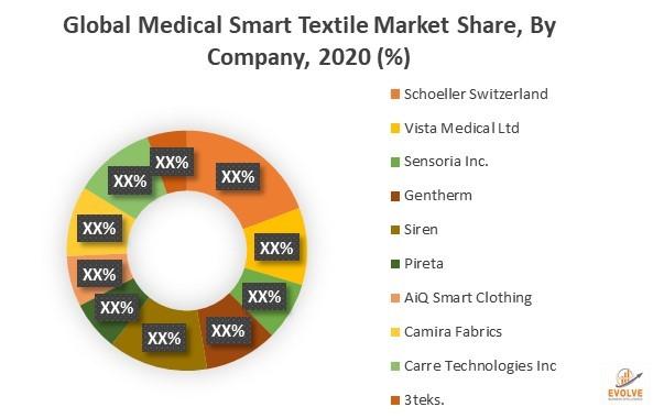 Some of the major Medical Smart Textile players holding highest market share include Schoeller Switzerland, Vista Medical Ltd, Sensoria Inc., Gentherm. These players use new product development as a key strategy to gain significant market share to compete with market leaders.