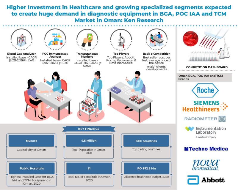 The report titled "Oman Blood Gas and POC Immunoassay Analyzer Market Outlook to 2026" by Ken Research suggested that the Diagnostic Device (BGA, POC IAA and TCM) market has been showing significant and continuous growth owing to huge investments from both Public and private sectors. The growing interest and high prevalence of chronic diseases is driving the demand for the diagnostic devices in the country of Oman.