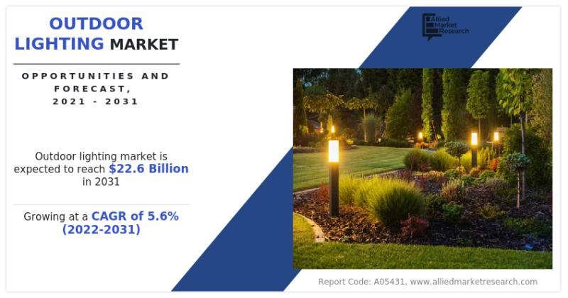 The outdoor lighting market size was valued at $12.5 billion in 2021, and is estimated to reach $22.6 billion by 2031, growing at a CAGR of 5.6% from 2022 to 2031.