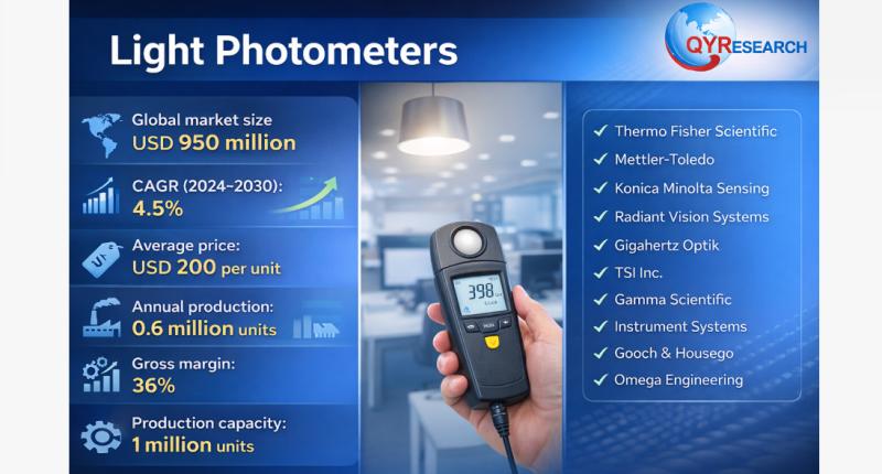 QY Research has released a comprehensive new market report on Light Photometers, optical measurement instruments used to quantify the intensity of light based on its interaction with matter, typically by measuring transmitted, absorbed, or scattered light. They are widely used in laboratories, environmental monitoring, healthcare, industrial quality control, and scientific research to determine concentrations, clarity, or optical properties of samples.