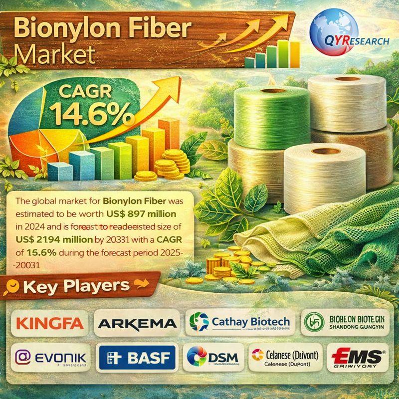 The global market for Bionylon Fiber was estimated to be worth US$ 897 million in 2024 and is forecast to reach a readjusted size of US$ 2,194 million by 2031, expanding at a robust CAGR of 14.6% during the forecast period 2025-2031.