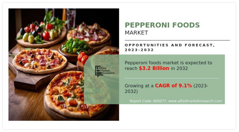 Pepperoni foods market size was valued at $1,353.9 million in 2022 and is projected to reach $3,208.1 million by 2032, registering a CAGR of 9.1% from 2023 to 2032.