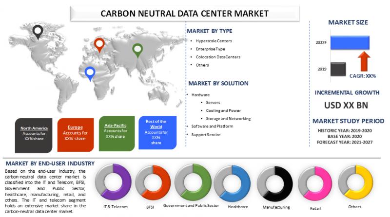 According to UnivDatos Market Insights (UMI)' research report "global carbon neutral data center", market is expected to grow at a CAGR of around 22% during the forecast period (2021-2027). The carbon neutral data centers are beneficial for reducing an organization's carbon footprints. The market growth attributes to the ongoing digital transformation in various businesses that have aided the amount of data produced. Besides, the surging imposition of numerous policies & environmental regulations laid by the government to reduce carbon emissions like the International Climate Agreement has further boosted the Global Carbon Neutral Data Center Market growth.