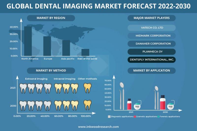 Inkwood Research estimates that the Global Dental Imaging Market will surge with a CAGR of 8.40% during the forecast period, 2022-2030, and is expected to generate $4564.92 million in revenue by 2030.Browse 76 market data Tables and 57 Figures spread over 179 Pages, along with an in-depth analysis of the Global Dental Imaging Market by End-User, by Application, by Method, and by Product.