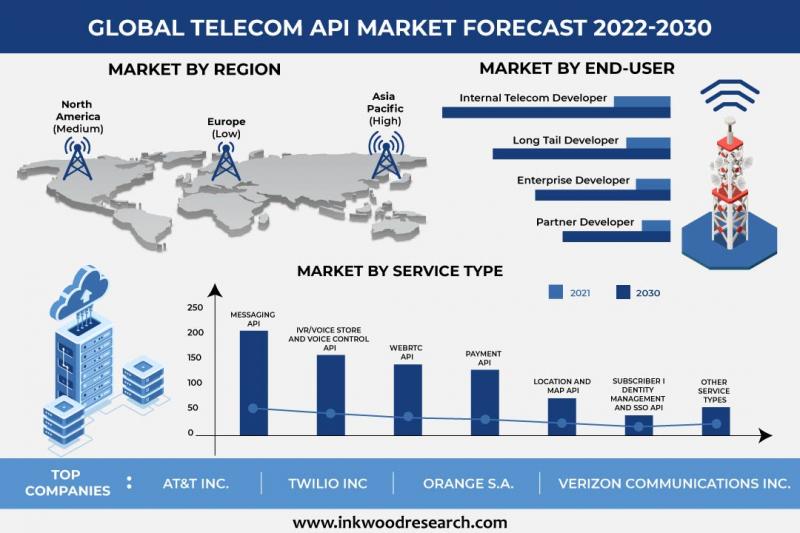 According to a new market research report launched by Inkwood Research, the Global Telecom API Market is predicted to project a CAGR of 16.22% in terms of revenue from 2022 to 2030 and is set to generate revenue of $829.26 billion by 2030.Browse 55 Market Data Tables and 48 Figures spread over 215 Pages, along with an in-depth analysis of the Global Telecom API Market by Service Type, Deployment Type, End-User, & by Geography.