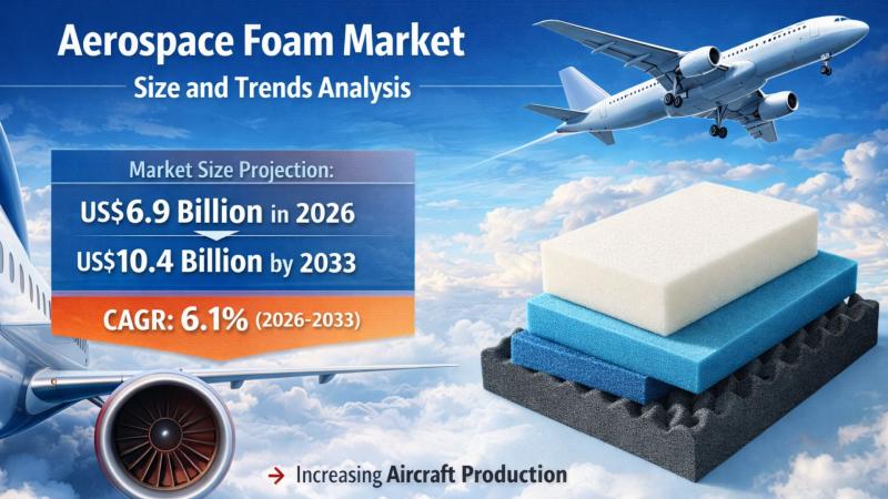 The global aerospace foam market is experiencing robust growth, supported by the rising demand for lightweight, durable, and high-performance materials in the aviation sector. According to the latest study by Persistence Market Research, the market is projected to grow from US$6.9 billion in 2026 to US$10.4 billion by 2033, registering a CAGR of 6.1% between 2026 and 2033. This expansion is largely driven by increasing aircraft production, expansion of the…