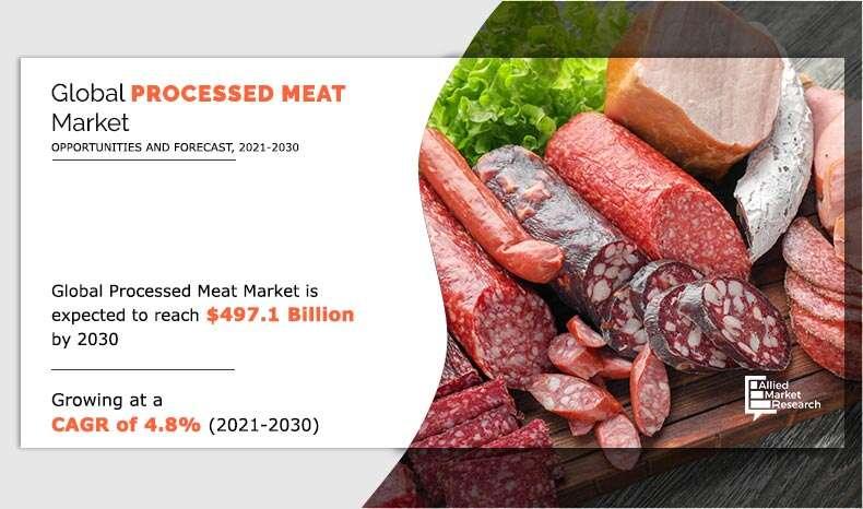 The global processed meat industry was estimated at $319.6 billion in 2020, and is anticipated to hit $497.1 billion by 2030, registering a CAGR of 4.8% from 2021 to 2030.Drivers, restraints, and opportunities-