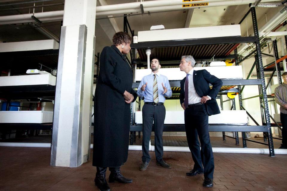 FarmTower Co. obtained clearance from Chicago officials to build and operate their R&D farm in the city limits. It is the primary location of their operations and the first vertical indoor farm in the city. Having worked with Mr. Amini to set the rules and regulations for indoor farming and aquaponics, Mayor Rahm Emanuel says, “Chicago is becoming a national leader in urban agriculture and they [FarmTower Co.] are developing technology for growing tilapia in-house, how to do the lighting and patenting it.” adding, “As populations grow, urban agriculture is becoming a growing and important field.”