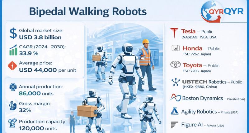 QY Research has released a comprehensive new market report on Bipedal Walking Robots, advanced legged robotic systems capable of human-like two-legged locomotion using dynamic balance control, force sensing, and real-time motion planning. Unlike wheeled or tracked robots, bipedal robots are designed to operate in human-built environments-stairs, ladders, uneven terrain, and narrow passages-making them strategically important for industrial facilities, public safety, logistics, healthcare, and future service applications. This report delivers an…