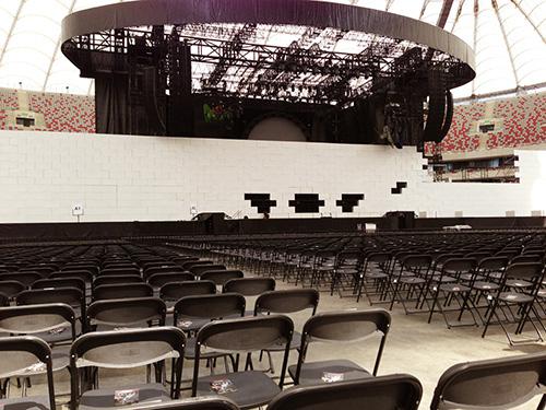 eps also provides specialized equipment at different venues to suit the needs of local production. Ground protection such as Matrax and Remopla or turf protection like SupaTrac and Terraplas may be chosen to provide the best results at every location. Furthermore, the organizers at German and Polish events rely on eps´ open-air-seating, which provide the visitors with a comfortable and relaxed concert experience. Some shows use eps site material, such as production vehicles and flagpoles, and can use the affiliated company allbuyone for additional equipment.