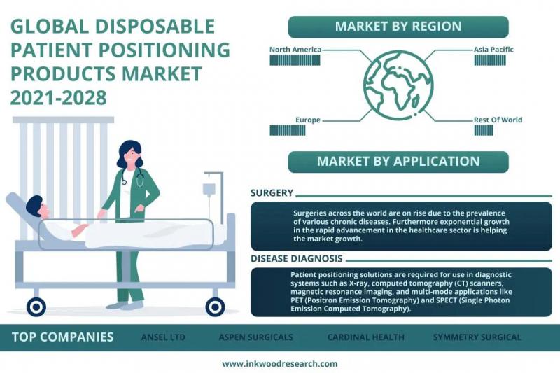 According to a new market research report launched by Inkwood Research, the Global Disposable Patient Positioning Products Market is proliferating at a CAGR of 3.21% over the forecast period, and is anticipated to generate $168.66 million by 2028Browse 41 market data Tables and 44 figures spread over 143 Pages, along with in-depth analysis on Global Disposable Patient Positioning Products Market by Product, Application, End User & by Geography
