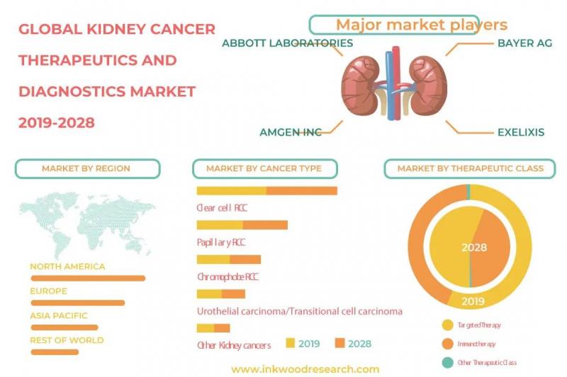 According to a new market research report launched by Inkwood Research, the Global Kidney Cancer Therapeutics and Diagnostics Market is growing at a CAGR of 5.52% during the forecasting period. In terms of revenue, the market is projected to rise around $7966.9 million by 2028.Browse 58 market data Tables and 48 figures spread over 210 Pages, along with in-depth analysis on Global Kidney Cancer Therapeutics and Diagnostics Market by Cancer Type, Component & by Geography