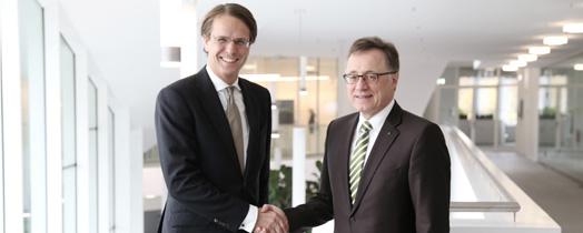 Prof. Wilhelm Bauer, Head of Fraunhofer IAO and Dr. Robert Gutsche, Head of Consulting at KPMG, seal their strategic partnership.