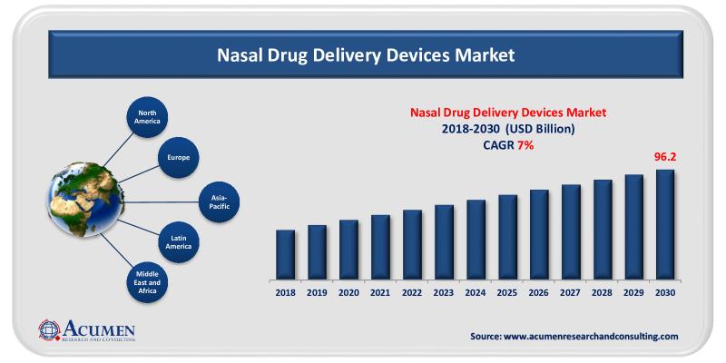 • Nasal Drug Delivery Devices Market achieved a value of USD 96.2 Billion by 2030 with a more than 7% CAGR.