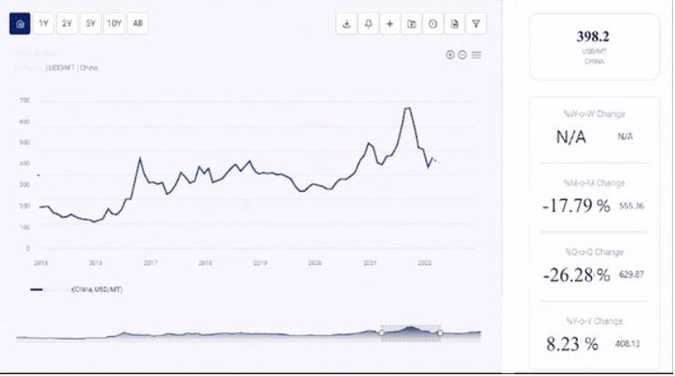 Each price record is linked to an easy-to-use graphing device dated back to 2014, which offers a series of functionalities; customization of price currencies and units and downloading of price information as excel files that can be used offline.