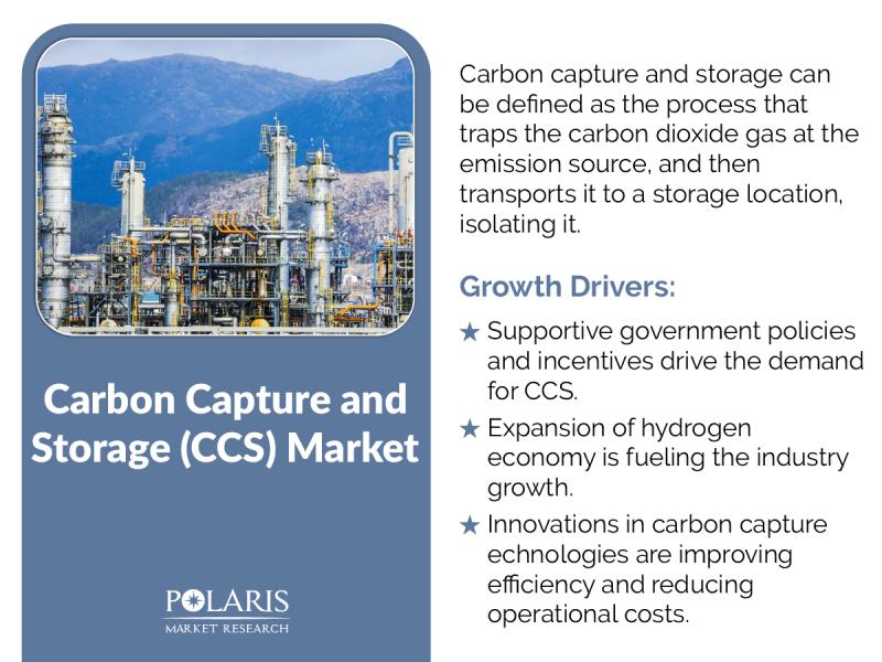 Polaris Market Research recently introduced the latest update on Carbon Capture and Storage Market that provides an extensive outlook of the market, analyzing key growth opportunities, challenges, risk factors, and emerging trends across diverse geographic regions. The report offers a definitive and meticulous analysis of the Carbon Capture and Storage Market size, share, demand, key growth factors, segmentation, country-level overview, and forecast.