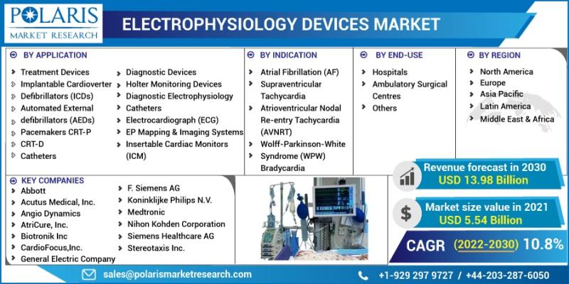 A Qualitative Research Study accomplished by Polaris Market Research database of "Electrophysiology Devices Market" with 100+ market data Tables, Pie Charts, Graphs & Figures spread through Pages and easy-to-understand detailed analysis. The Electrophysiology Devices Market report is a valuable source for the best market and business solutions for the Electrophysiology Devices industry in this rapidly altering marketplace. Innumerable business challenges can be quickly and easily conquered with this complete market research report. The Electrophysiology Devices report has been formed by taking into thought numerous aspects of marketing research and analysis that can be enlisted as market size estimations, market dynamics, company & market best practices, entry-level marketing strategies, positioning and segmentations, competitive landscaping, opportunity analysis, economic forecasting, industry-specific technology solutions, roadmap analysis, targeting key buying criteria, and in-depth benchmarking of vendor offerings."According to the research report, the global electrophysiology devices market was valued at USD 5.54 billion in 2021 and is expected to reach USD 13.98 billion by 2030, to grow at a CAGR of 10.8% during the forecast period."