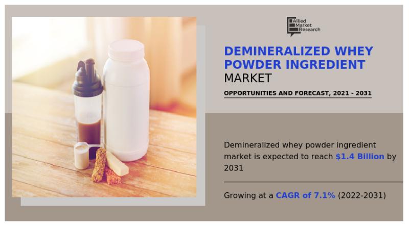 The global demineralized whey powder ingredient industry was generated $726.4 million in 2021, and is projected to reach $1.4 billion by 2031, growing at a CAGR of 7.1% from 2022 to 2031.