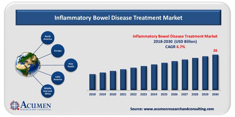 This report contains concise and accurate data on the Inflammatory Bowel Disease Treatment Market size, which is updated as global markets change. The markets have changed dramatically over time, making it a difficult task to assess the market scope and situation. As a result, our analysts at Acumen Research and Consulting have evaluated the current market situation and provided a detailed account of it to help you comprehend the competition and scope of the Inflammatory Bowel Disease Treatment Market value in a considerably effective manner.