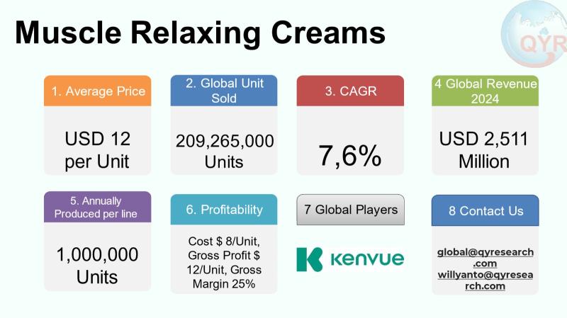 Muscle Relaxing Creams Market to Reach CAGR 7,6% by 2031 Top 10 Company Globally