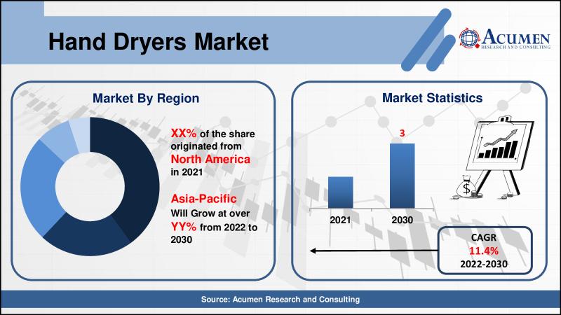 • Hand Dryers Market achieved a value of USD 3 Billion by 2030 with a more than 11.4% CAGR.