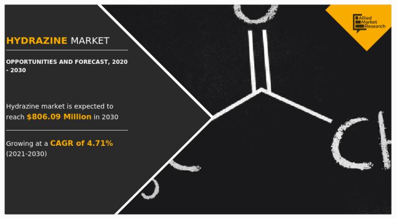 According to the report published by Allied Market Research, the global hydrazine market generated $510.95 million in 2020, and is projected to reach $806.09 million by 2030, witnessing a CAGR of 4.7% from 2021 to 2030. The report provides a detailed analysis of changing market dynamics, top segments, value chain, key investment pockets, regional scenario, and competitive landscape.