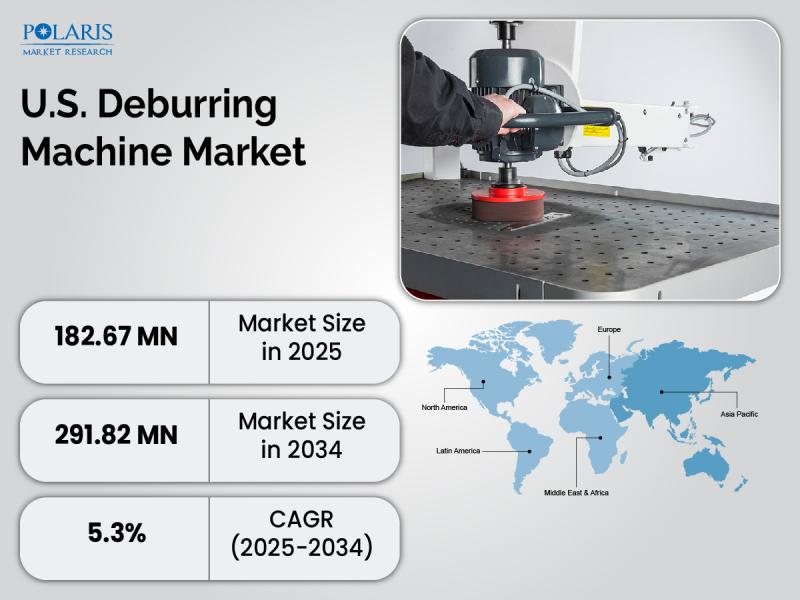 U.S. Deburring Machine Market is currently valued at USD 173.61 Million in 2024 and is anticipated to generate an estimated revenue of USD 291.82 Million by 2034, according to the latest study by Polaris Market Research. Besides, the report notes that the market exhibits a robust 5.3% Compound Annual Growth Rate (CAGR) over the forecasted timeframe, 2025 - 2034