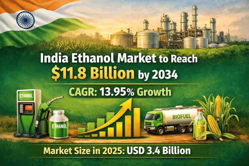 India Ethanol Market to Reach $11.8 Billion by 2034 | CAGR 13.95% Growth