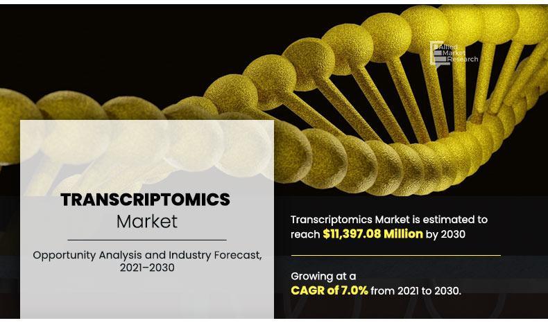 According to a new report published by Allied Market Research, titled, "Transcriptomics Market by Type, Technology, Application, and End User: Global Opportunity Analysis and Industry Forecast, 2021-2030," the transcriptomics market size was valued at $5,790.51 million in 2020, and is estimated to reach $11,397.08 million by 2030, growing at a CAGR of 7.0% from 2021 to 2030.Transcriptomics is the study of the transcriptome, the complete sequence of RNA, known as expression profiling. Transcriptomics includes everything related to RNA. It includes their disclosure status, their role, status and termination. Transcriptome analysis is used to study how genes change in different organisms and is instrumental in understanding human disease.