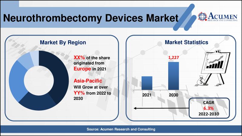 Global Neurothrombectomy Devices Market is expected to grow at a CAGR of around 6.3% from 2022 to 2030 and reach the market value of over US$ 1,227 Million by 2030.Download Sample Pages of this report@ https://www.acumenresearchandconsulting.com/request-sample/2414